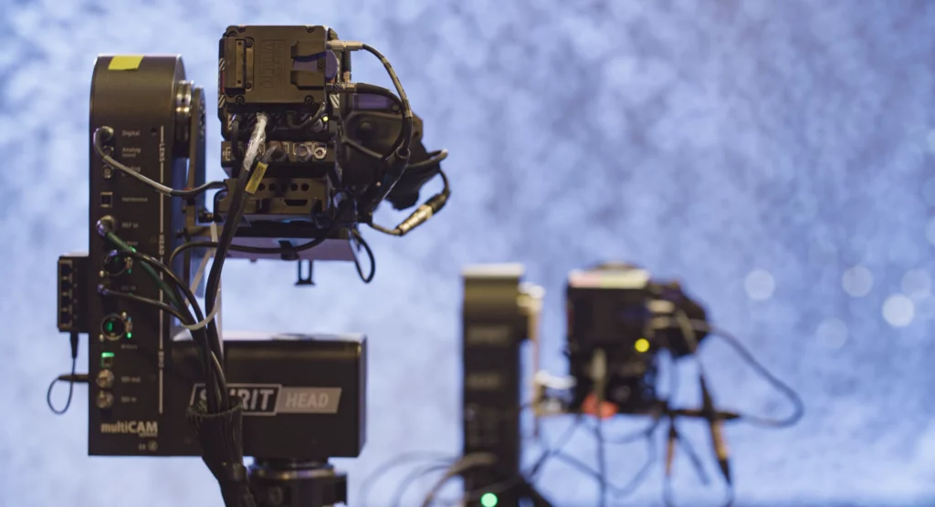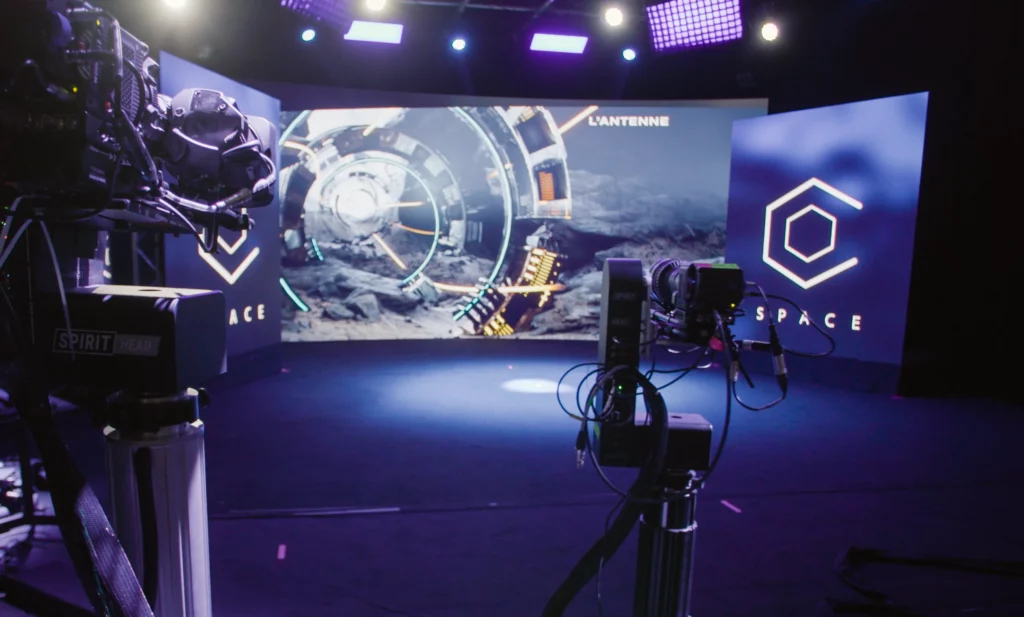 Nous avons développé la solution Backdrop pour proposer des projets de captation multicam en XR. La XR permet de projeter un décor virtuel qui donne un effet de profondeur au plateau avec une perspective adaptée au point de vue caméra.