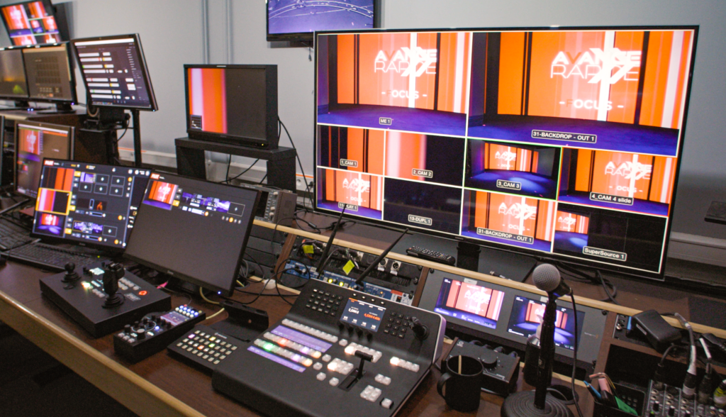 Le studio multiCAM SPACE vous propose des services complets pour vous accompagner à toutes les étapes-clés de votre projet de tournage. Que ce soit dans la sélection et la création des fonds diffusés sur les murs Led, la captation et l’enregistrement en multicaméra, la gestion du son et de la lumière, etc… Le SPACE c’est une offre clés-en-main afin que vous puissiez vous concentrer sur le contenu de votre message et optimiser vos journées de tournage.